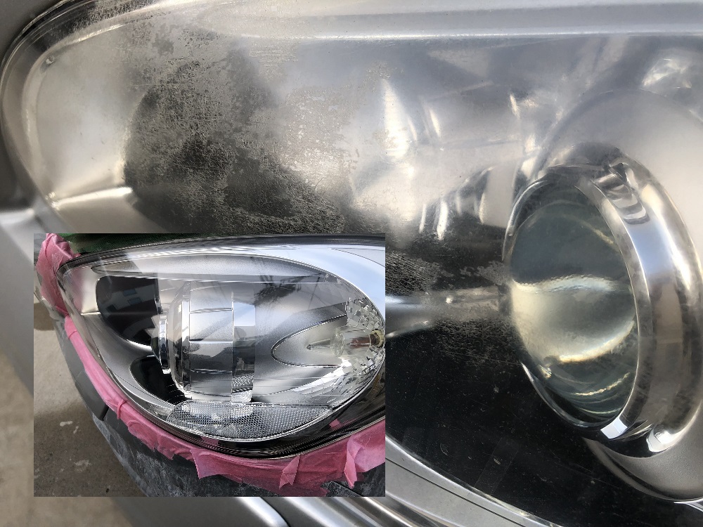 - ヘッドライト 経年劣化による黄ばみ、ハードコート劣化によるガビガビ